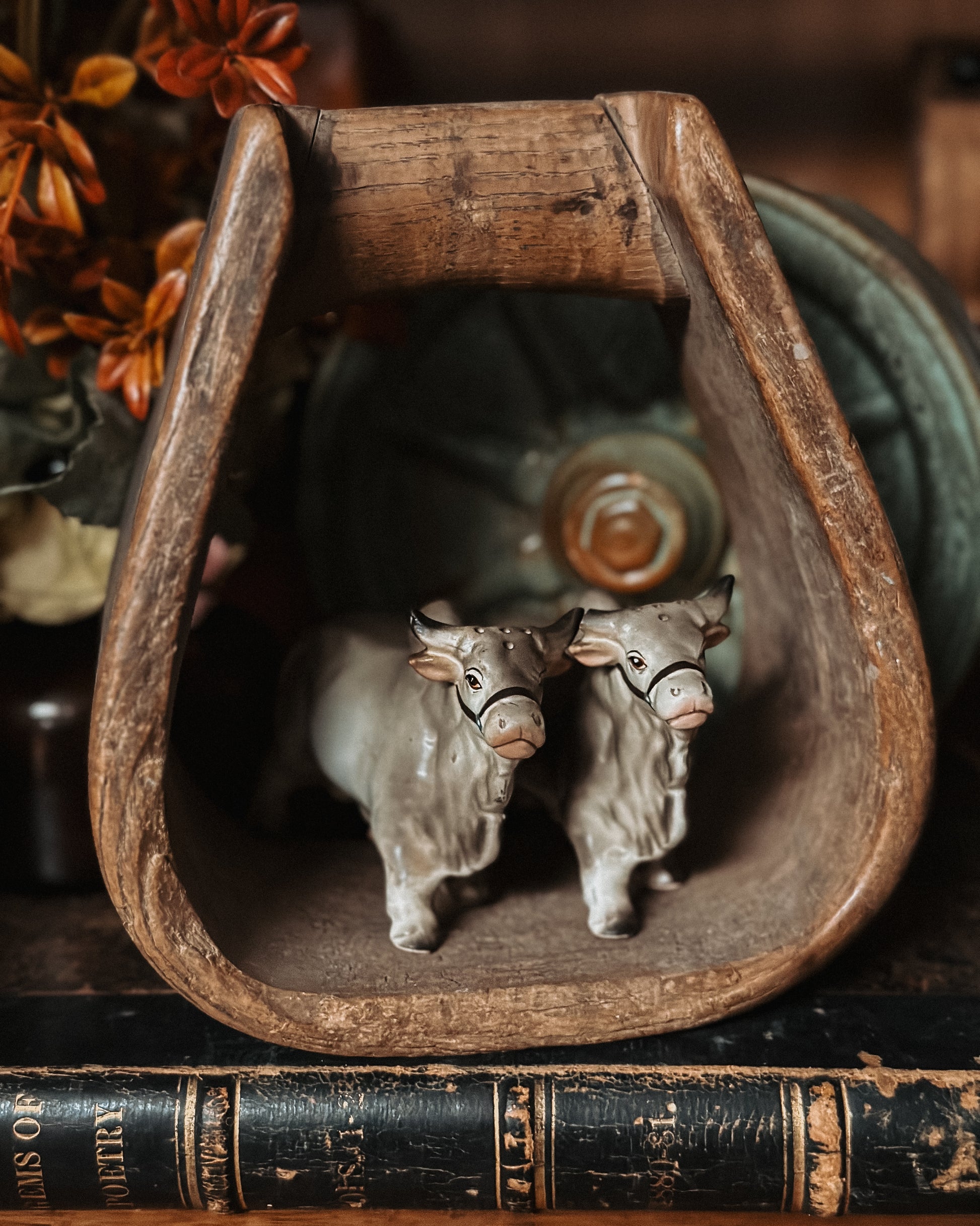 Vintage Victoria Brahma Bull Salt & Pepper Shaker Set